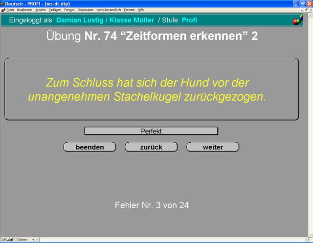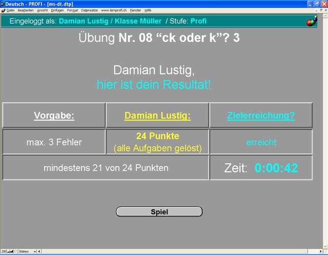 wird dem Schüler individuell nach x.ten Versuch gezeigt (vom Lehrer bestimmbar) - Verbesserung