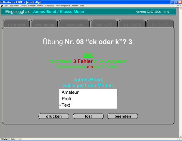 - setzen einer Zeitlimite pro Aufgabe im Profi-Modus |